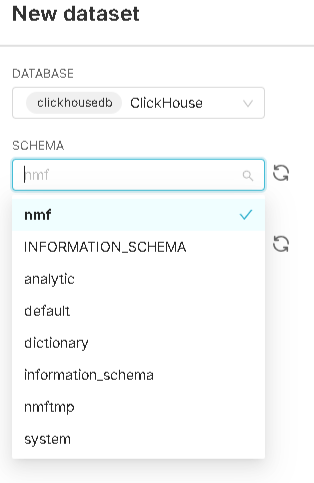 Выберите в полях "database", "schema" и "table", данные о подключении. Введите текст запроса в окне редактирования и нажмите "Run". Если результаты запроса соответствуют желаемым, сохраните его "Save" - > "Save dataset" Набор может быть сохранён поверх существующего или создан, как новый.